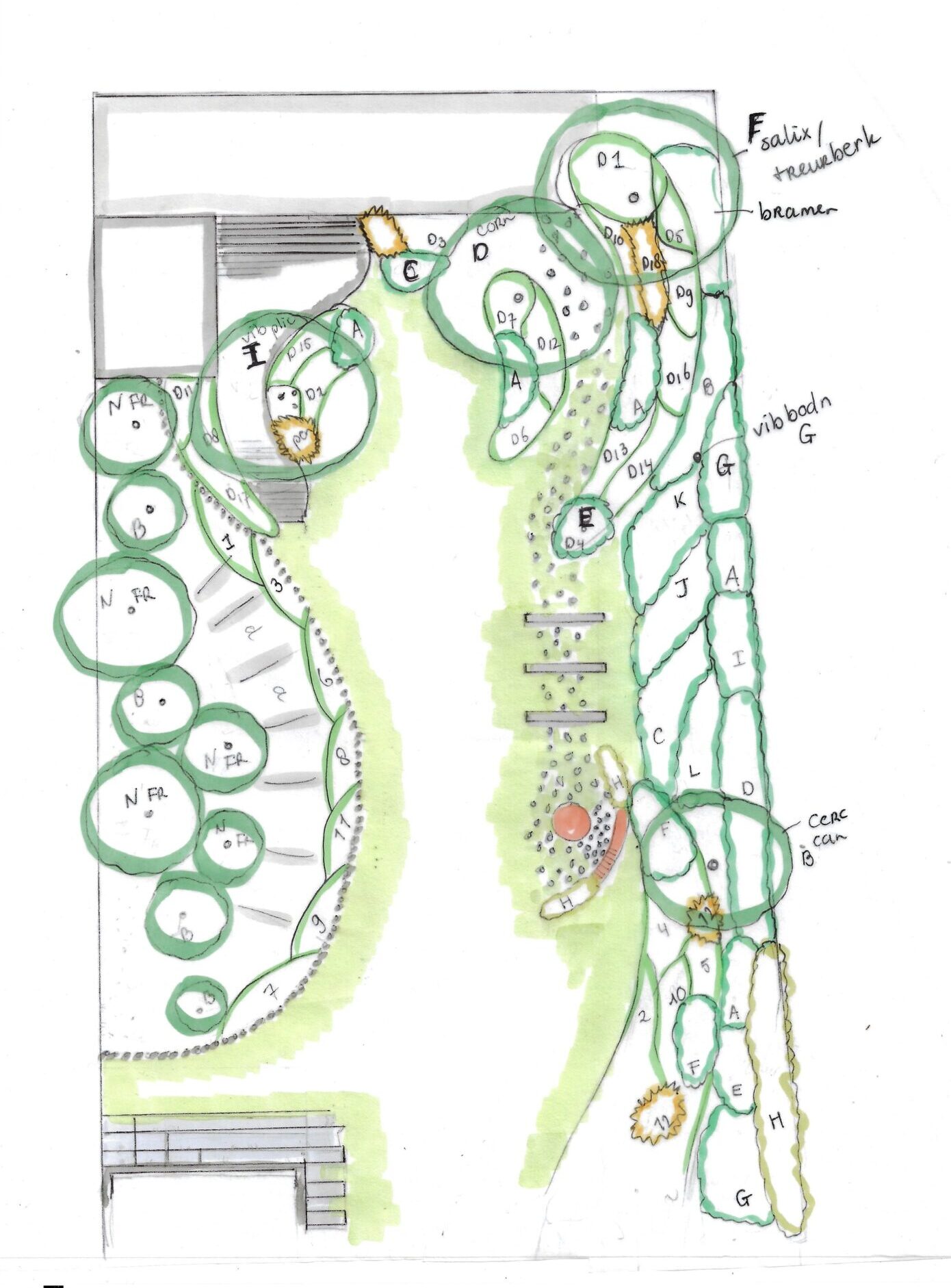 Dit leuke project is een achtertuin, die al heerlijk vol was met beplanting maar iets te chaotisch en teveel van het goede. Met een waterpartij en nog steeds veel ruimte voor De kinderen en insecten. Het project staat nog op de planning om uitgevoerd te worden dus… wordt vervolgd. Een compliment; “Dit hadden wij totaal niet verwacht” ( hoe leuk is dat) en vooral na het presenteren van het definitieve plan en beplantingsplan; ‘Je hebt vertaald wat wij in gedachten hadden!!’.